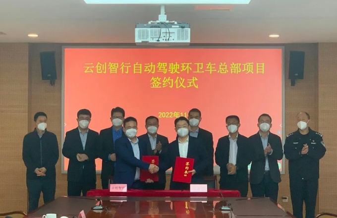1月26號上午,云創智行科技(蘇州)有限公司(以下簡稱“云創智行”)與合肥高新區政府在管委會舉行自動環衛車運營總部項目簽約儀式。儀式由合肥高新區管委會副主任呂波主持召開,云創智行科技(蘇州)有限公司創始人兼CEO白云龍,合肥高新區黨工委書記、管委會主任宋道軍見證簽約,自貿局、科技局、城管局、上市辦、交警大隊參加。