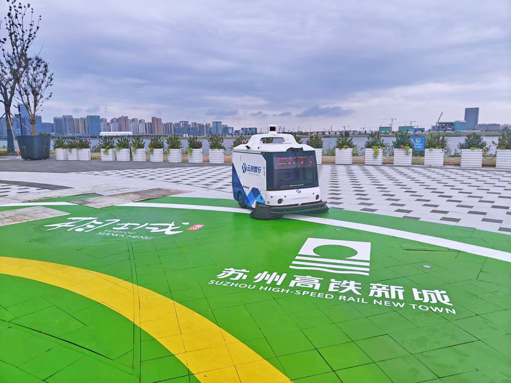 云創智行作為自主研發譜系化無人駕駛清掃車的創新企業,產品已經在蘇州的多個場景批量落地,其中包括:蘇州站北廣場、十全街、東沙湖基金小鎮、金雞湖音樂噴泉、裕沁庭、蘇州奧體中心......