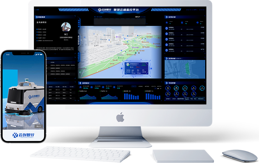 移動端,電腦端雙平臺,可無限制接入多臺清掃車,實時監控畫面回傳,如遇特殊情況,立即開啟遠程駕駛,接管車輛。可選配安防巡檢模塊,形成動態監控網,對可能發生的危險情況提前預警。